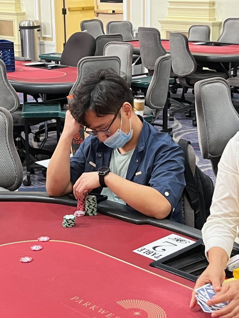 Players are taking their first 15-minute breather of the day in our $1,200 buy-in Parkwest…