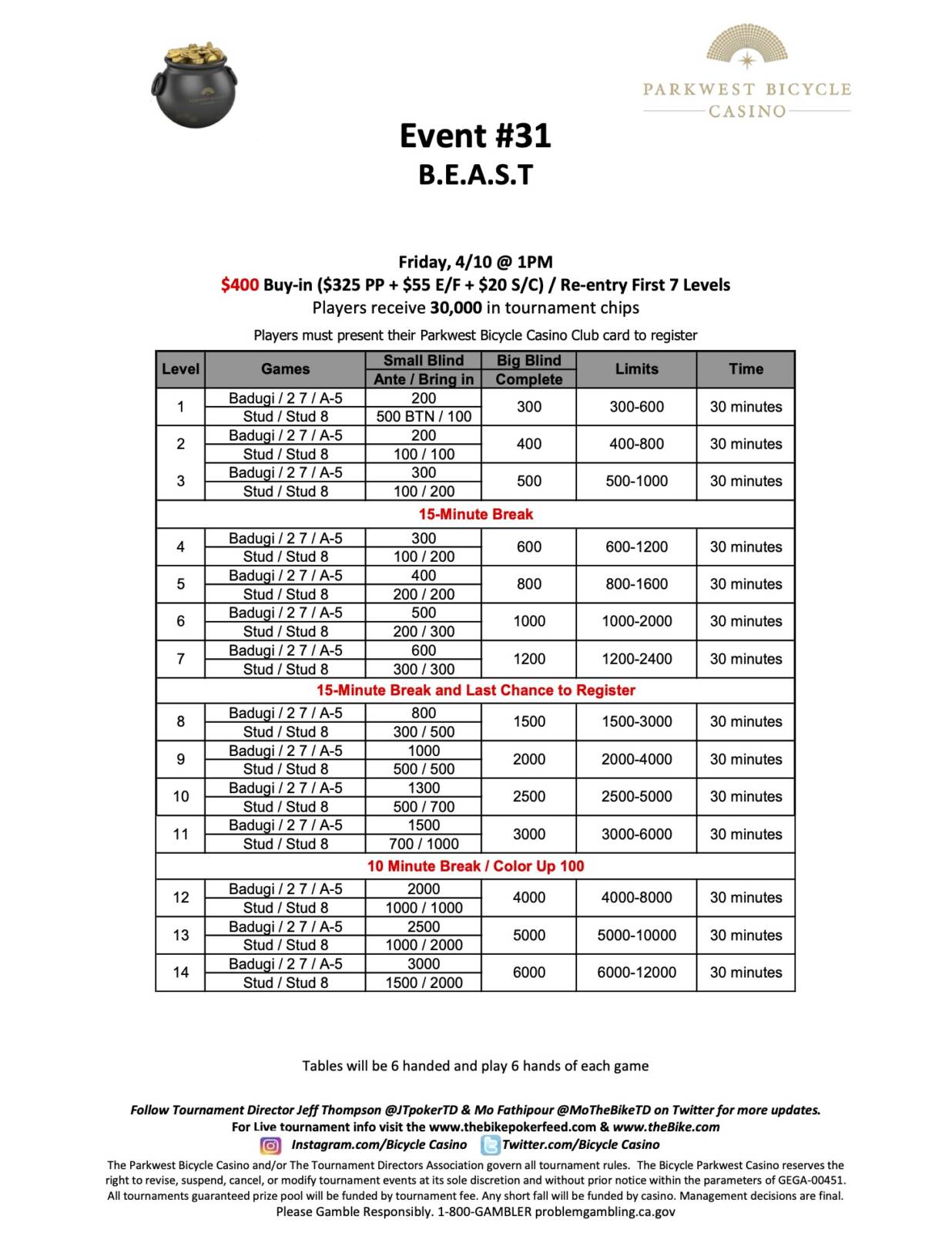 Registration is open until 5:30 PM, and you can view the full structure below.