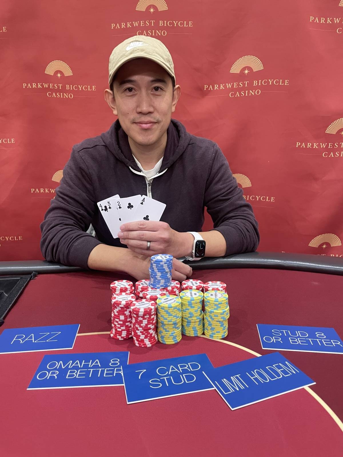 This morning’s one day event drew a crowd of 303 players, making for a final prizepool of $63,630. The final 38 players will finish in the money tonight, with first place taking home $14,545, and the trophy. Check out a full breakdown of the payouts below.