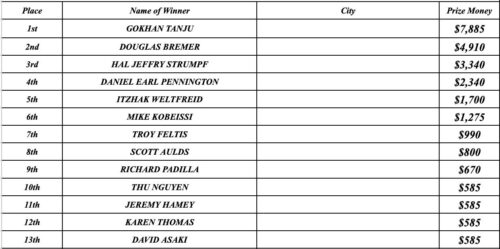 The seniors event yesterday played all the way down to a winner, with Gokhan Tanju defeating Douglad Bremer heads up to earn a payday of $7,885, and the trophy. You can view a full breakdown of the payouts below.