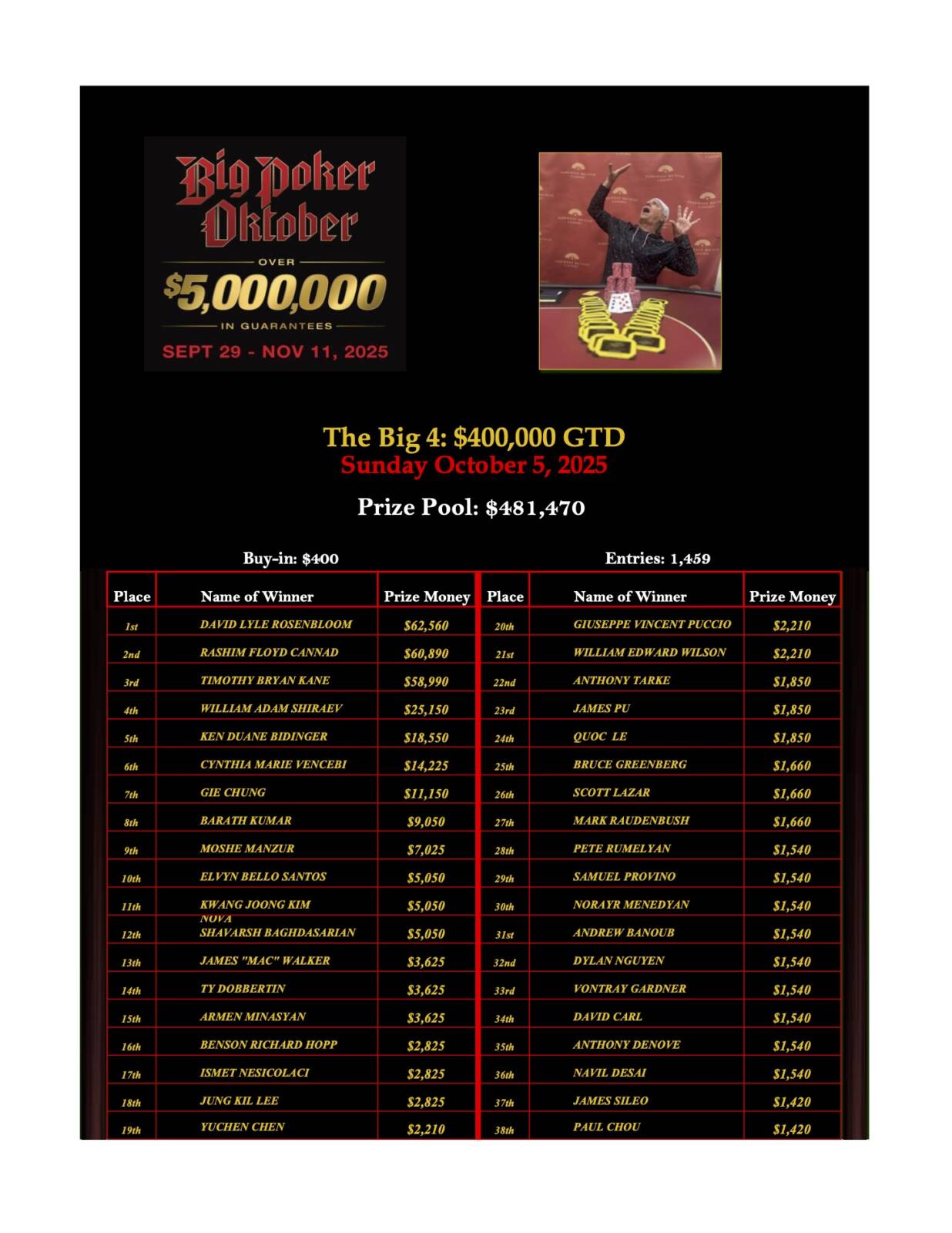WSOP bracelet winner Cord Garcia leads the way coming into today’s Day 2 restart with 948,000, but he has Bike regulars Andrew Ostapchenko, Jared Griener, Marc Spitaleri, and Marc Fiorentino all in the top ten to contend with today.