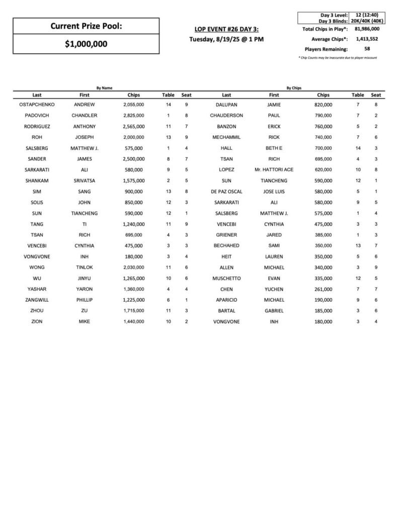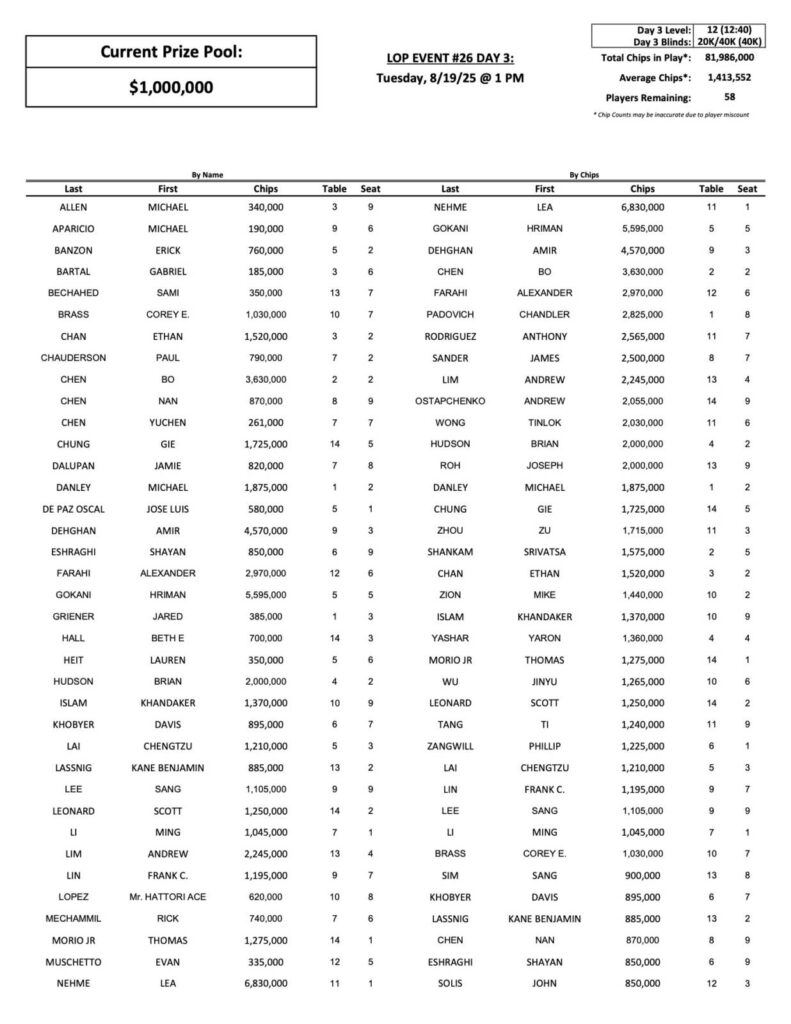 As we reported last night, Lea Nehme dominated the second half of the day, racing out to a nice chip lead over the field with 6,830,000. Hriman Gokani (pictured above) has made a few final tables here at the Bike in the last 12 months, and looks primed for another deep run, as he is currently second in chips.