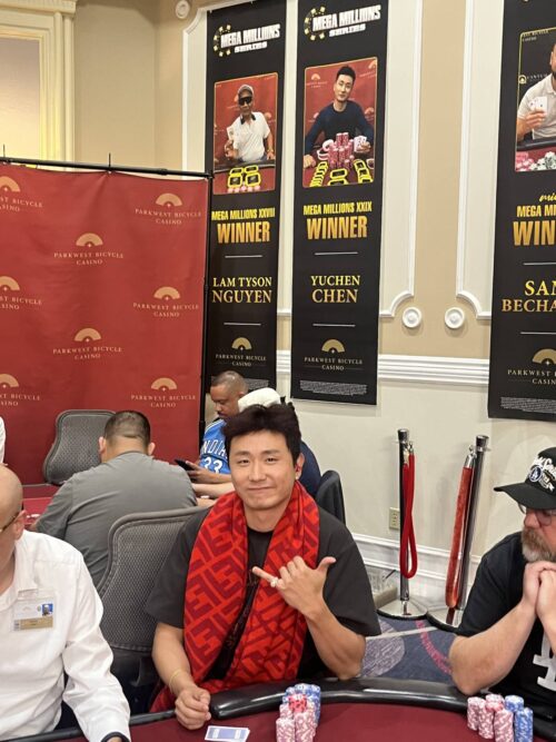 With just four tables left, those remaining have locked up over $1,780, with their eyes set on a much bigger prize down the road. Someone who is familiar with winning a big prize here is Mega Millions XXIX champion Yuchen Chen (pictured above), who earned over $210,000 in a five way chop there last year. Check out his count, and a few other notable players, below, and stay tuned to find out who makes the final table!