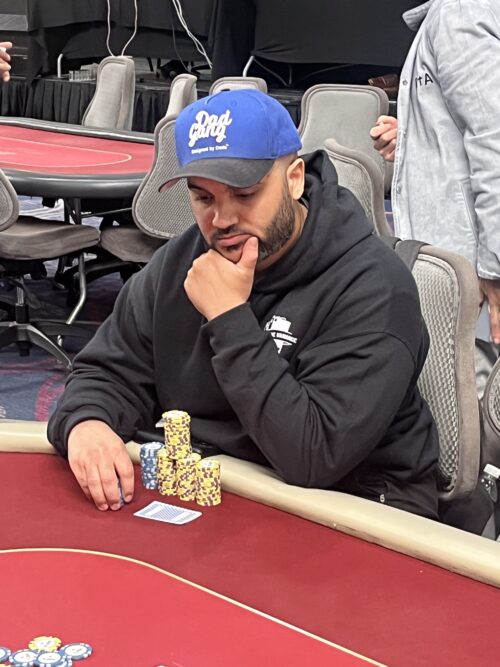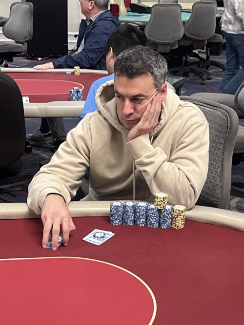 While most of our attention is on the $300,000 Guaranteed finals, which is just about to get to the final table, we did want to pass along that the Legendary Deepstack final table is also setting up to be quite stacked. Fausto Valdez (pictured above) is looking to continue his impressive local play, as he looks to have the chip lead to start the final table of nine. Another player who has been hot recently is Rob Gill (pictured below), who looks to have an average stack to start the final table. They are playing for over $24,000. Stay tuned to find out who wins!