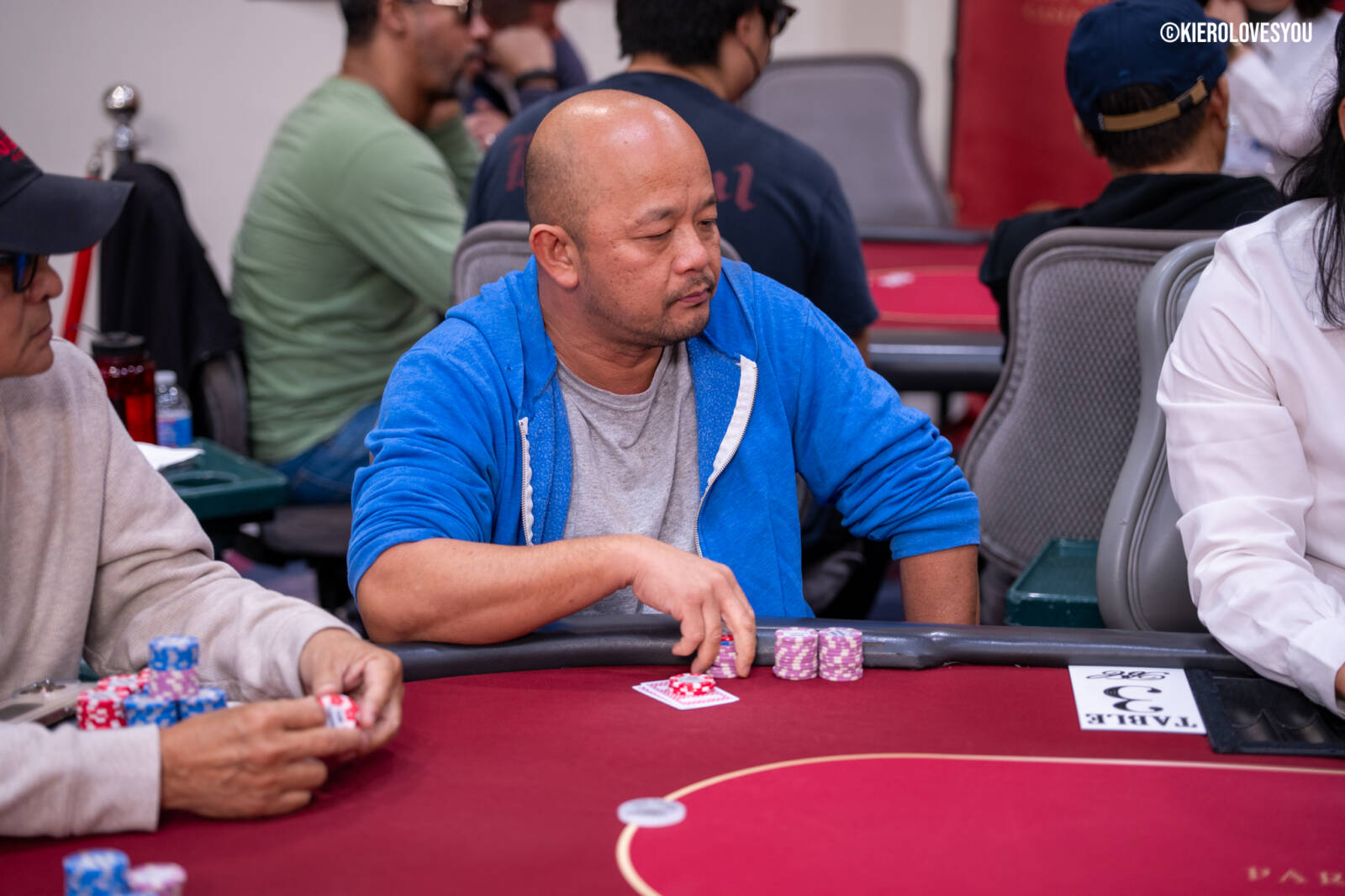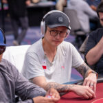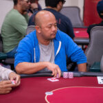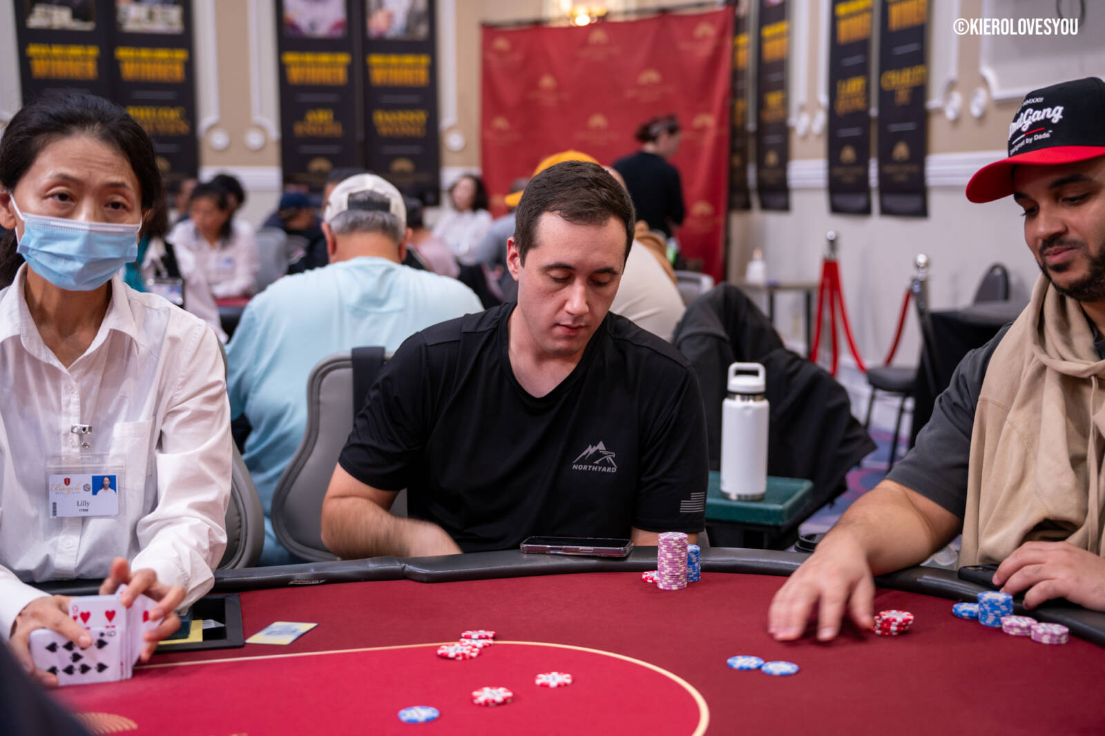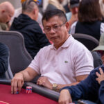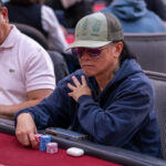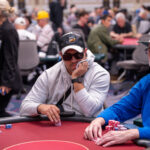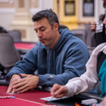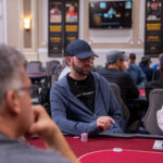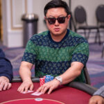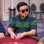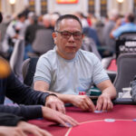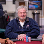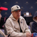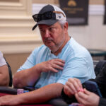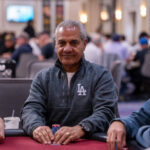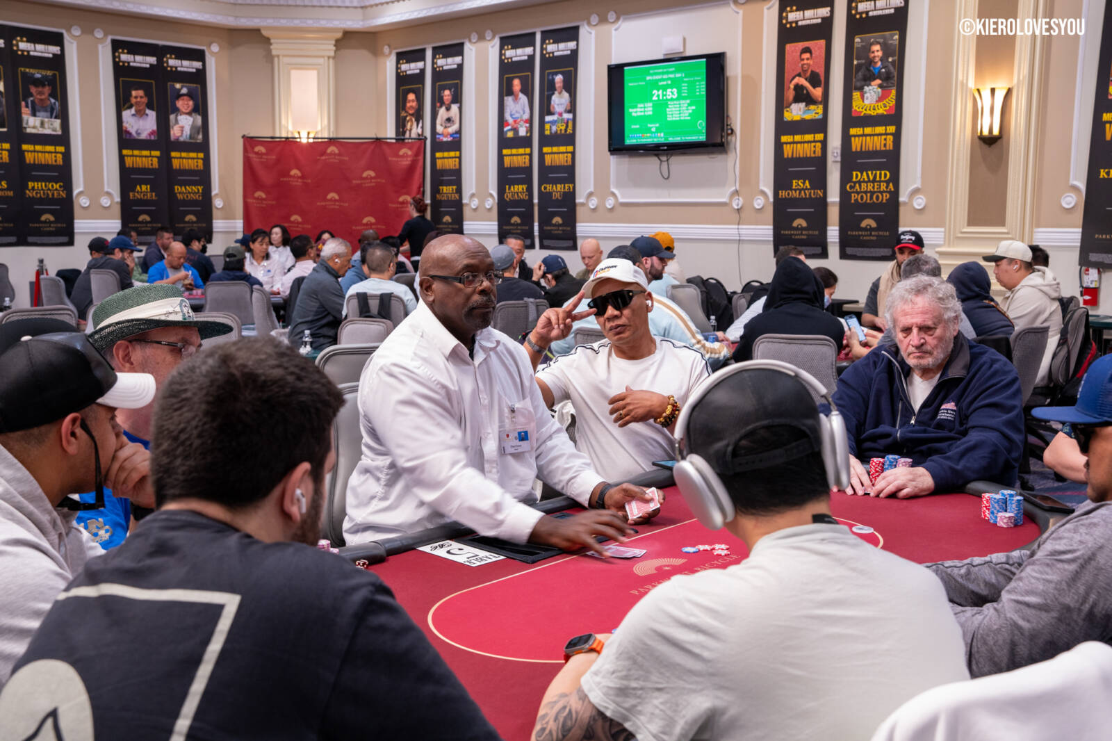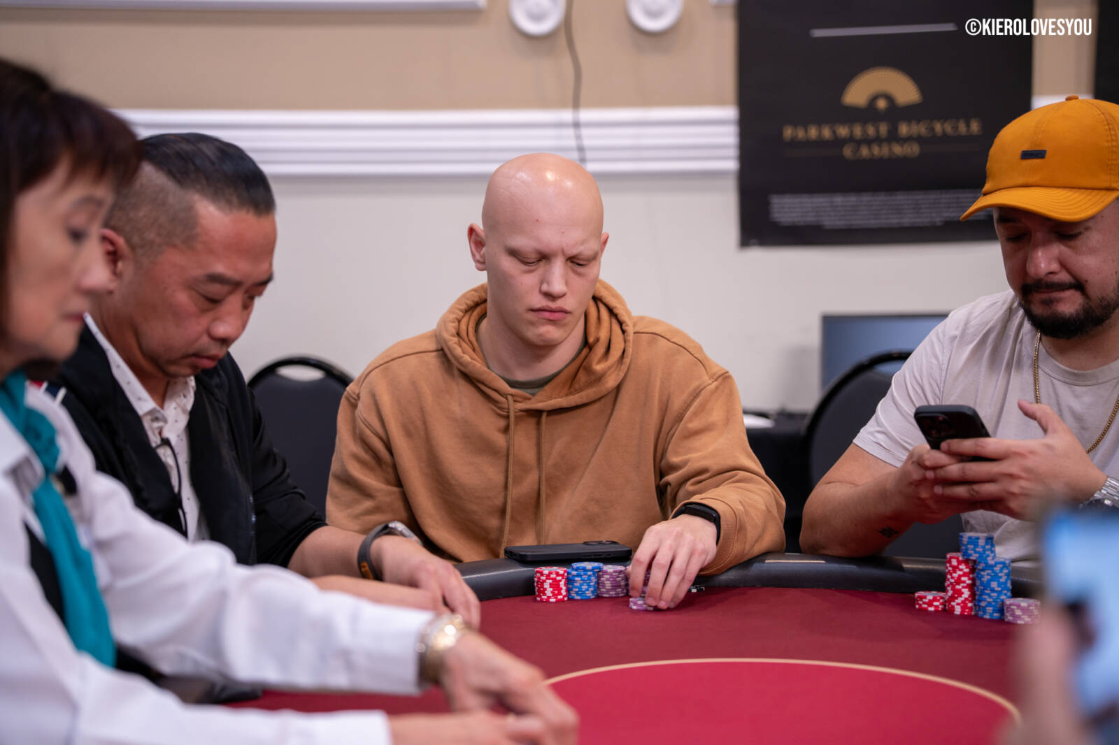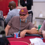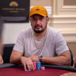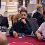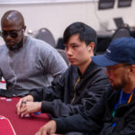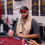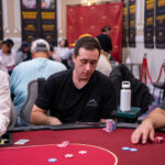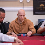 Danny Geyser (PICTURED ABOVE) came in at 3rd largest stack of the day with 799,000 and has risen to 1.3 Million in chips to take the lead for now. Jonah Lopas and Huy Nguyen both losing a few chip but in the top 5 stacks still. Tournament Pros and locals in the field having a good time here at the Parkwest Bicycle Casino as we will update you with more as the day progresses. Players will break at the end of level 18.