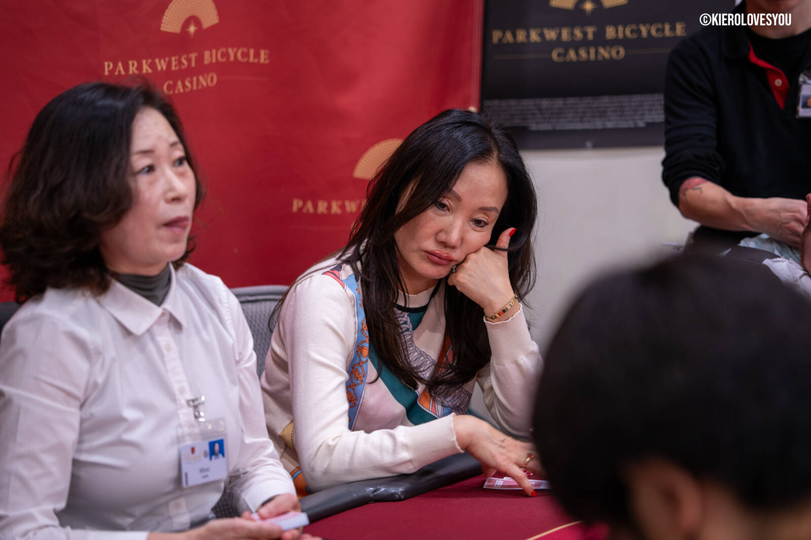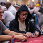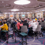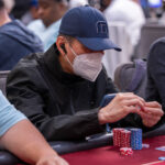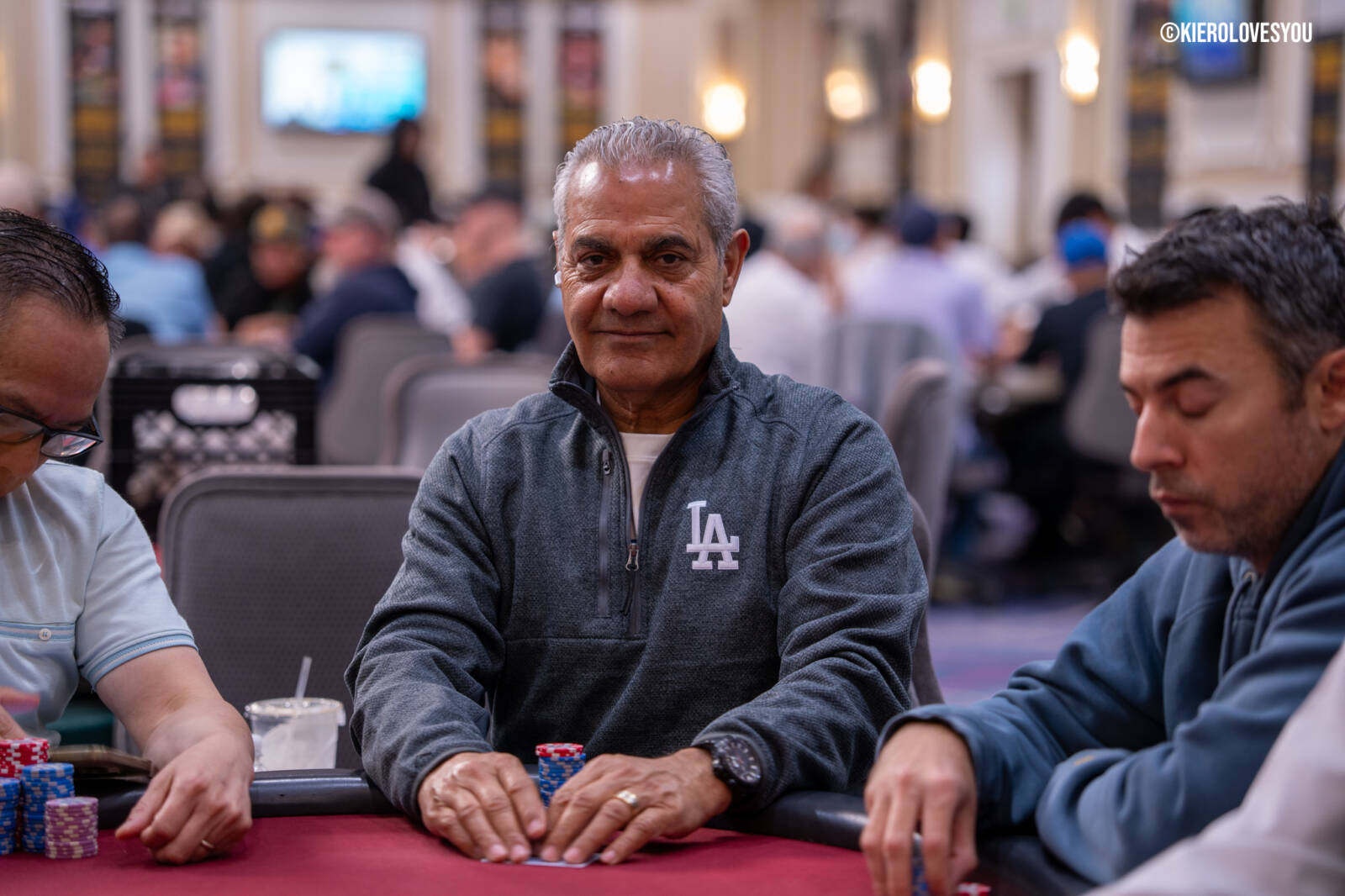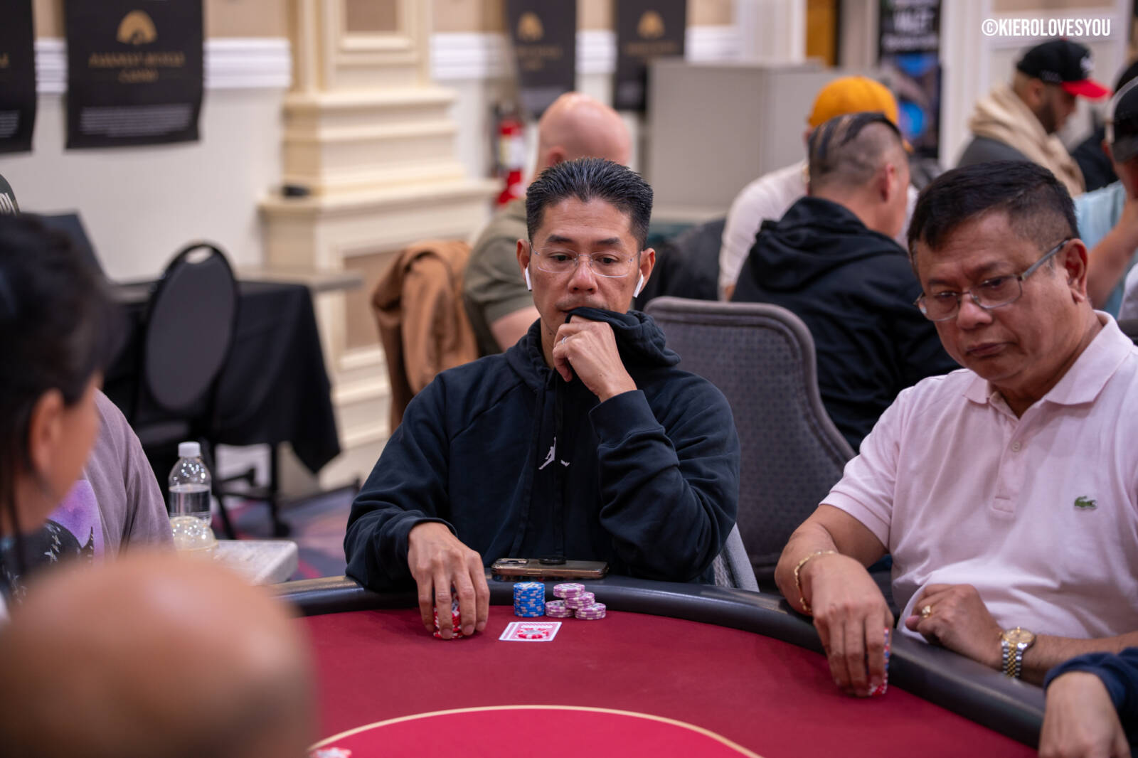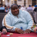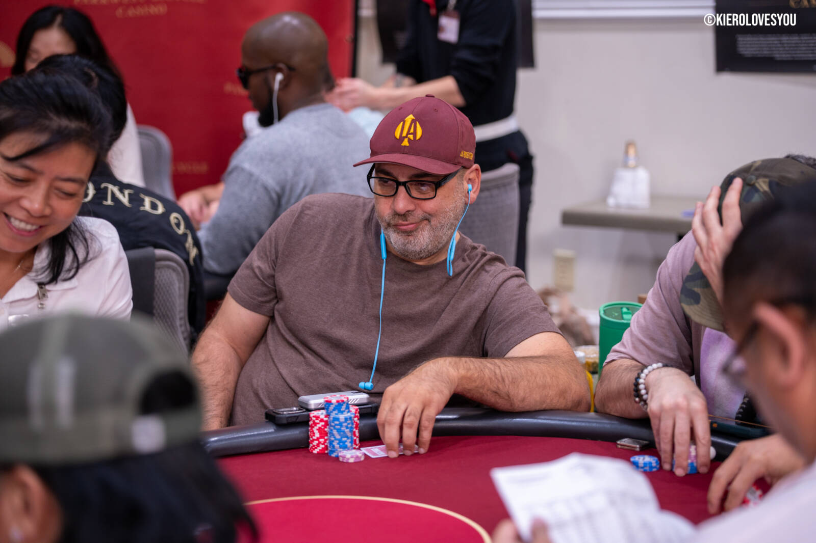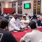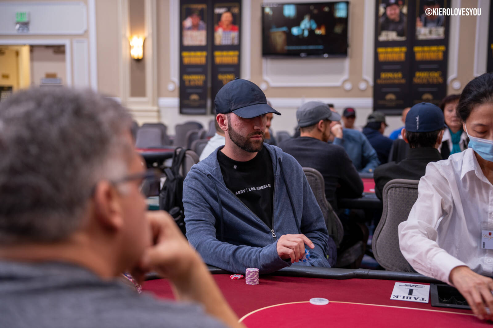 Danny Geyser (PICTURED ABOVE) came in at 3rd largest stack of the day with 799,000 and has risen to 1.3 Million in chips to take the lead for now. Jonah Lopas and Huy Nguyen both losing a few chip but in the top 5 stacks still. Tournament Pros and locals in the field having a good time here at the Parkwest Bicycle Casino as we will update you with more as the day progresses. Players will break at the end of level 18.