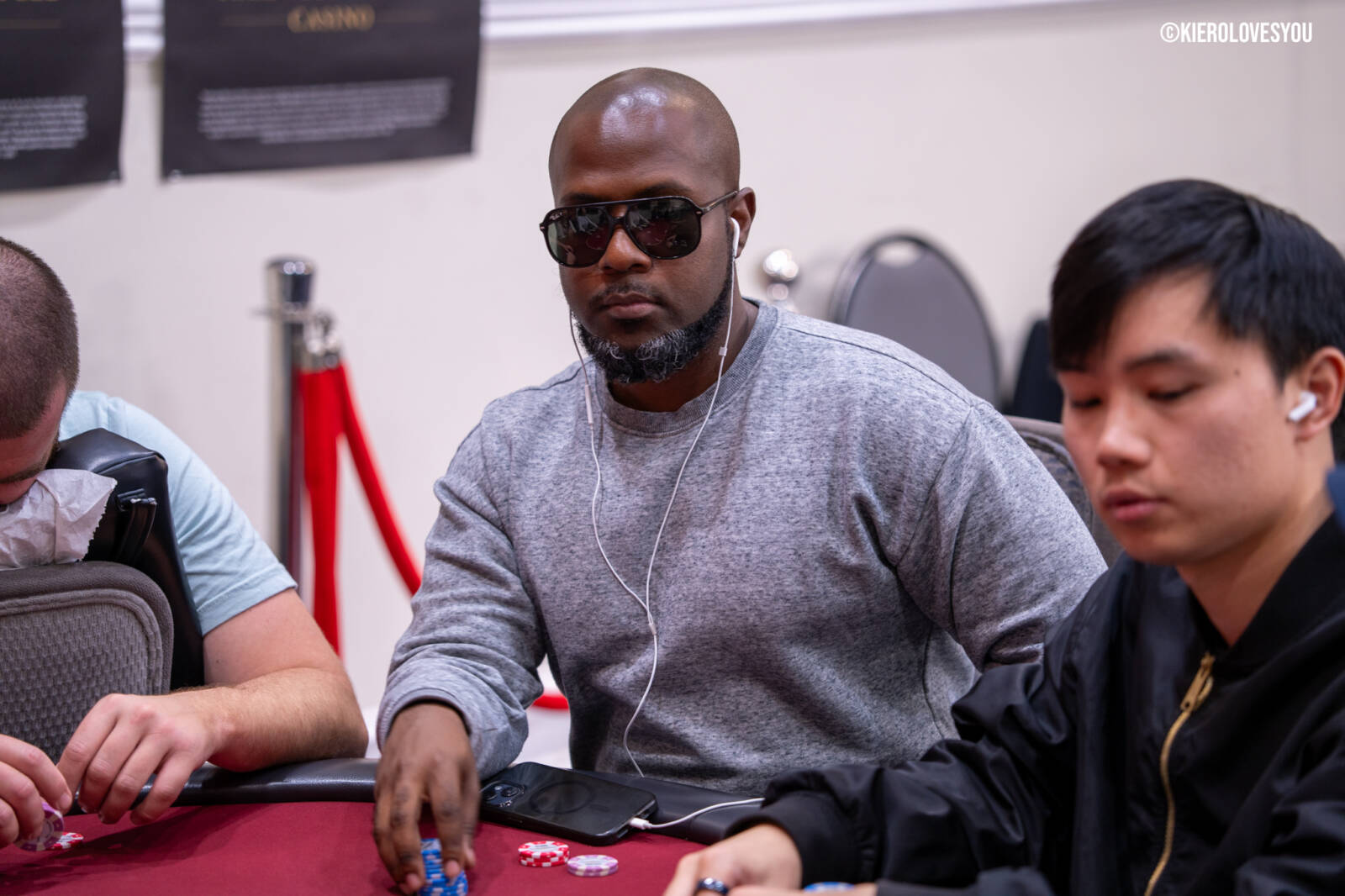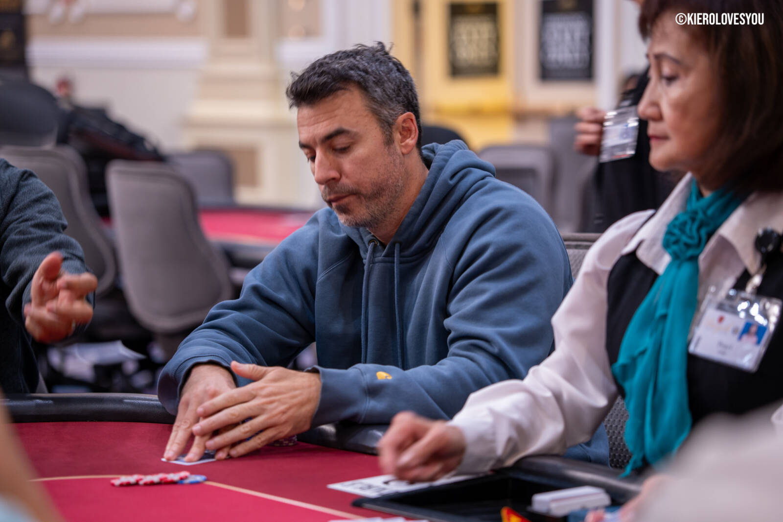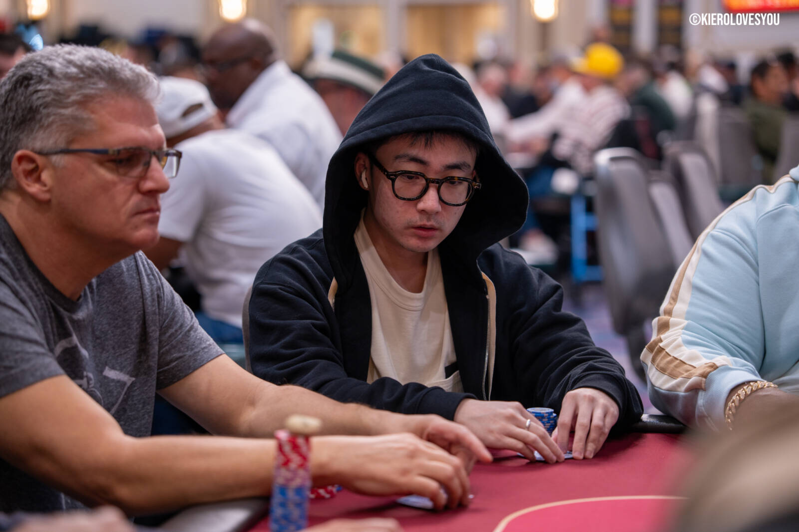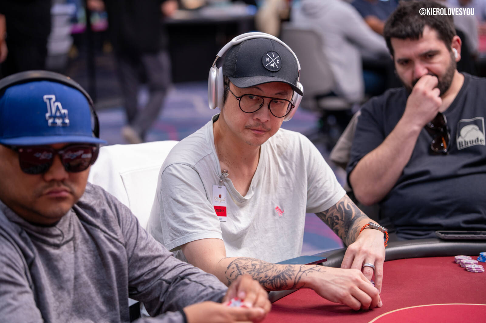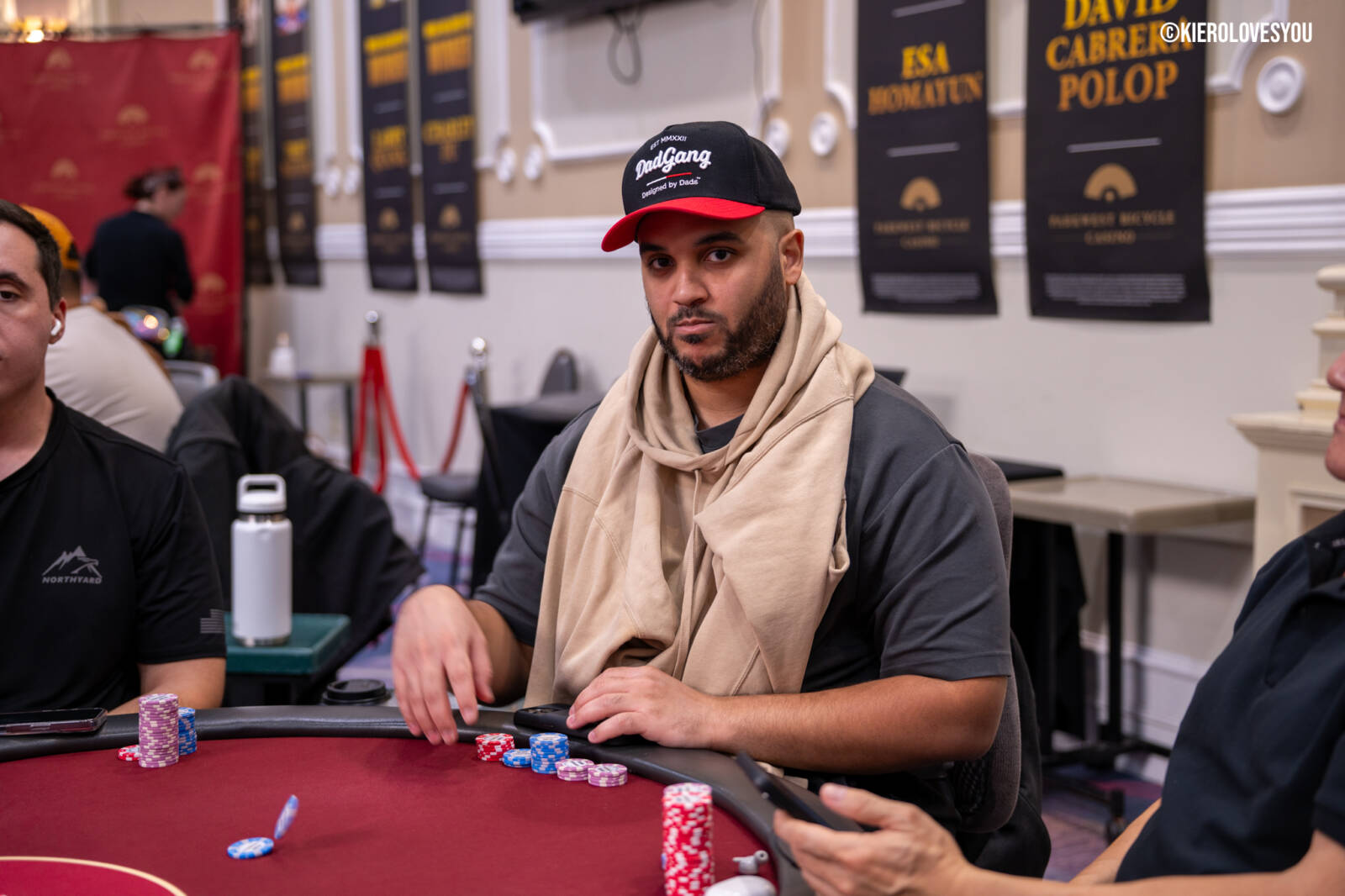 Danny Geyser (PICTURED ABOVE) came in at 3rd largest stack of the day with 799,000 and has risen to 1.3 Million in chips to take the lead for now. Jonah Lopas and Huy Nguyen both losing a few chip but in the top 5 stacks still. Tournament Pros and locals in the field having a good time here at the Parkwest Bicycle Casino as we will update you with more as the day progresses. Players will break at the end of level 18.