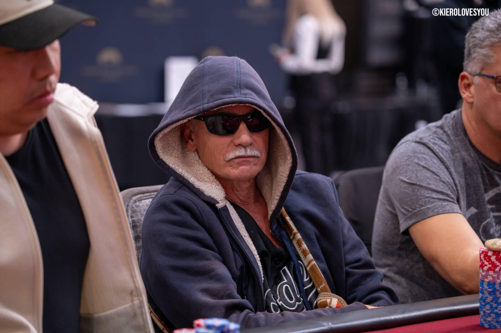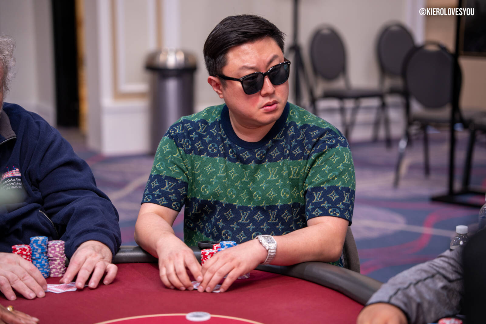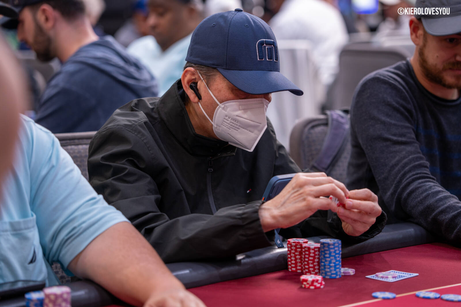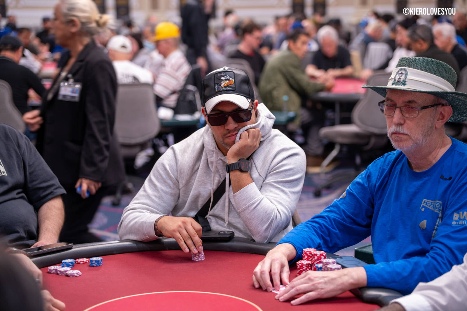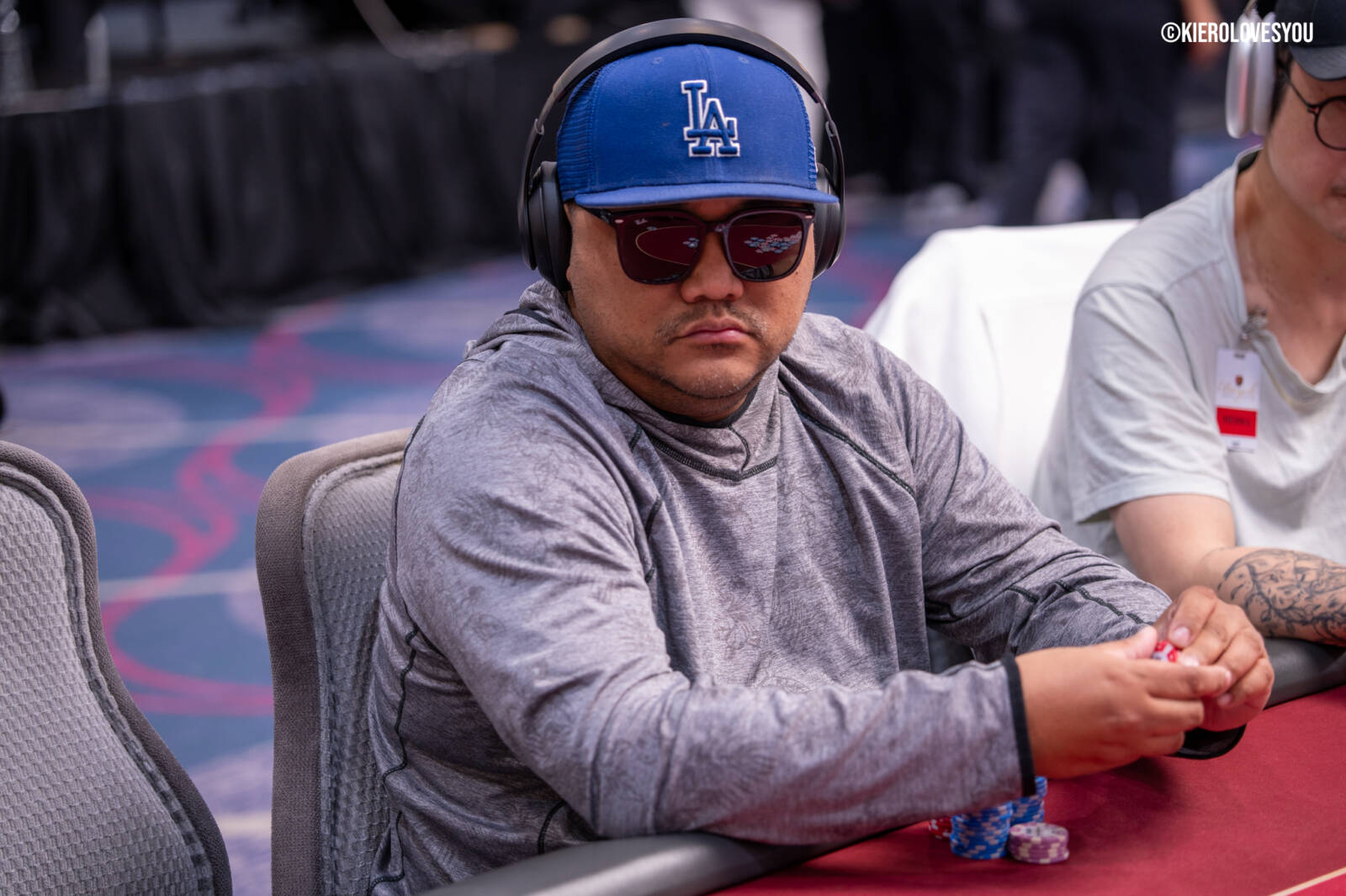 Danny Geyser (PICTURED ABOVE) came in at 3rd largest stack of the day with 799,000 and has risen to 1.3 Million in chips to take the lead for now. Jonah Lopas and Huy Nguyen both losing a few chip but in the top 5 stacks still. Tournament Pros and locals in the field having a good time here at the Parkwest Bicycle Casino as we will update you with more as the day progresses. Players will break at the end of level 18.