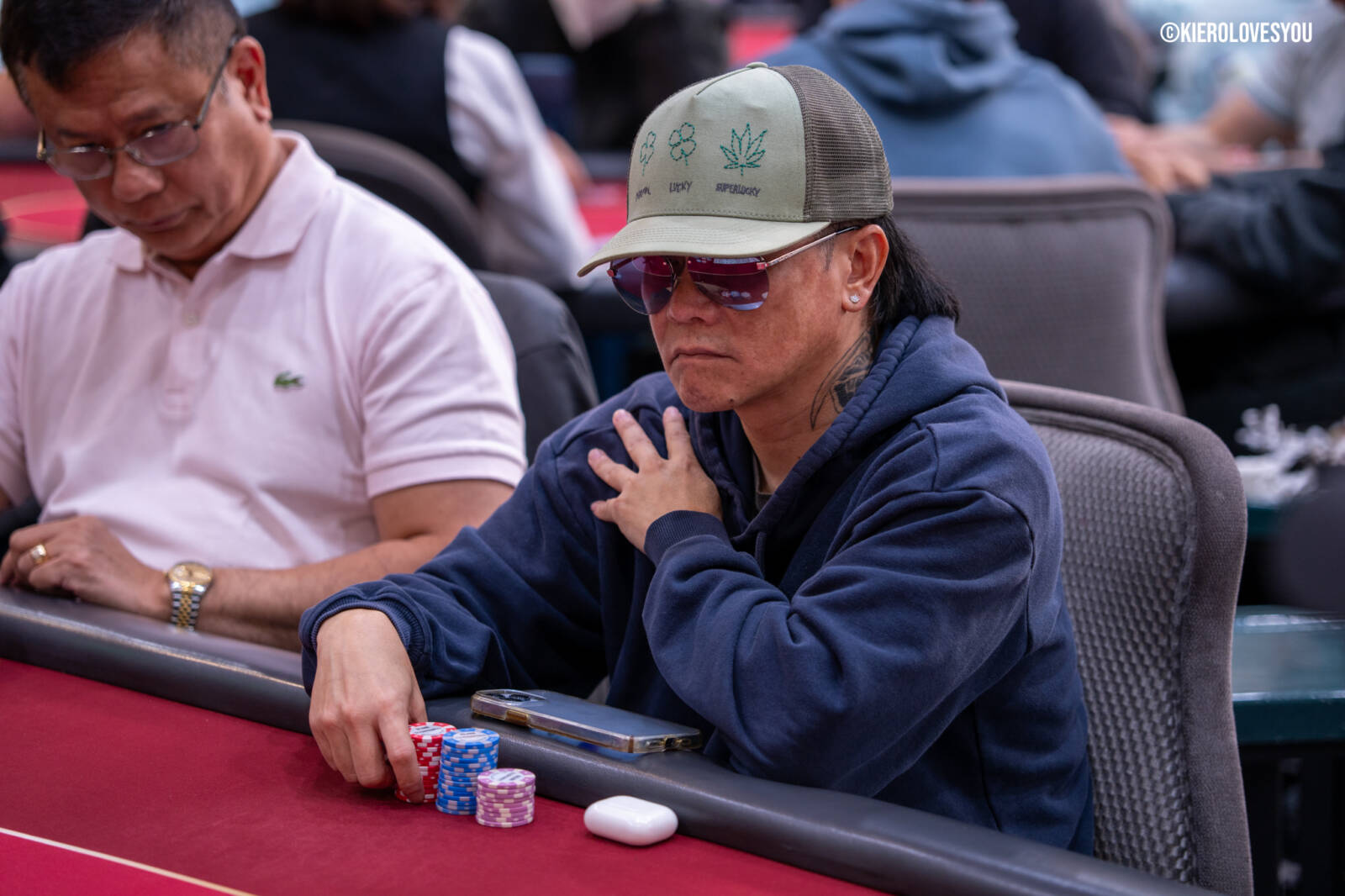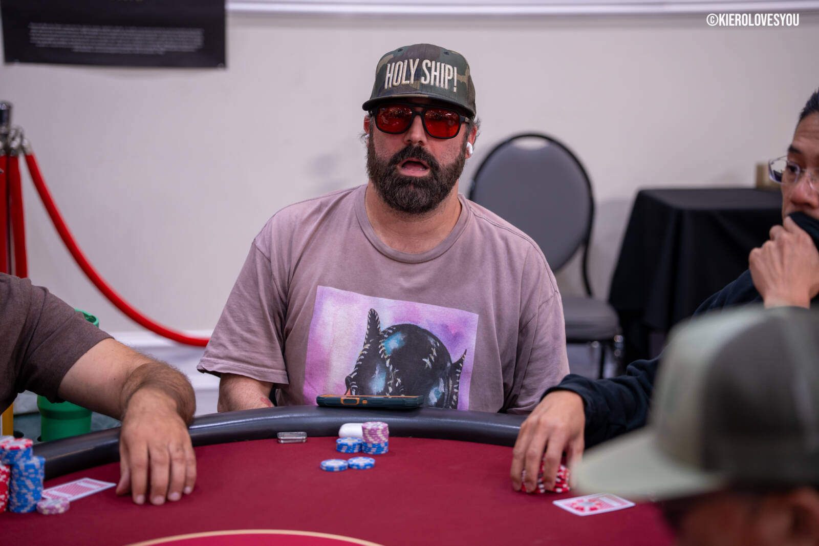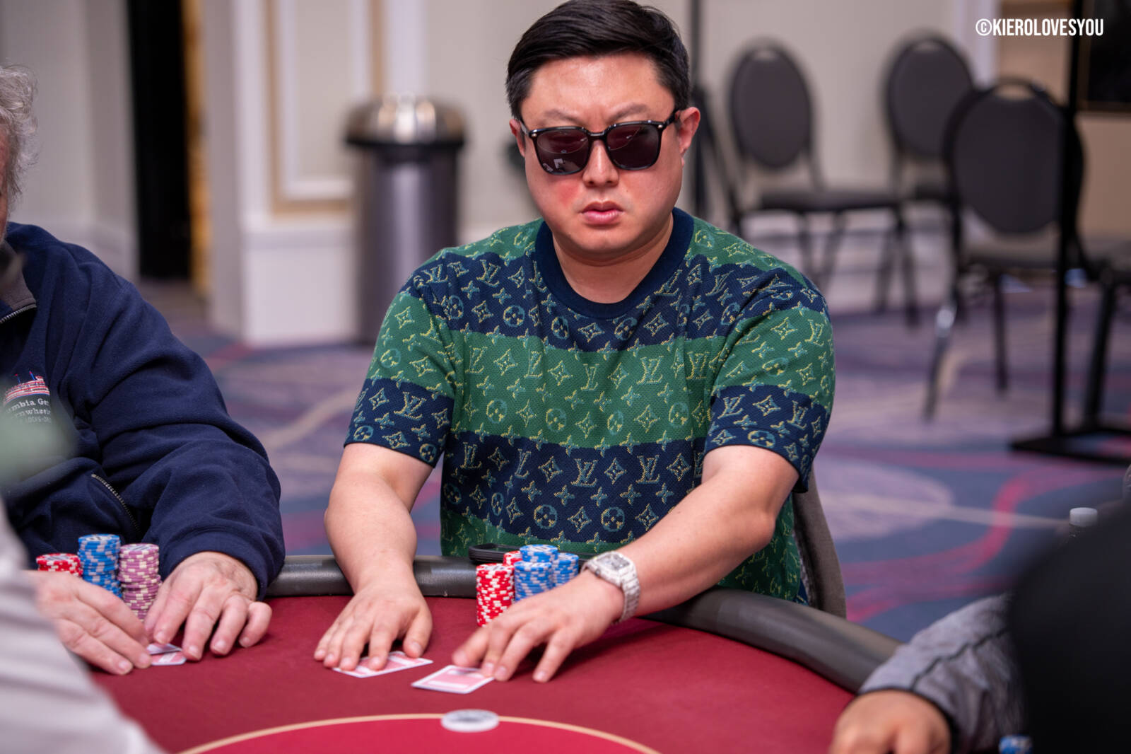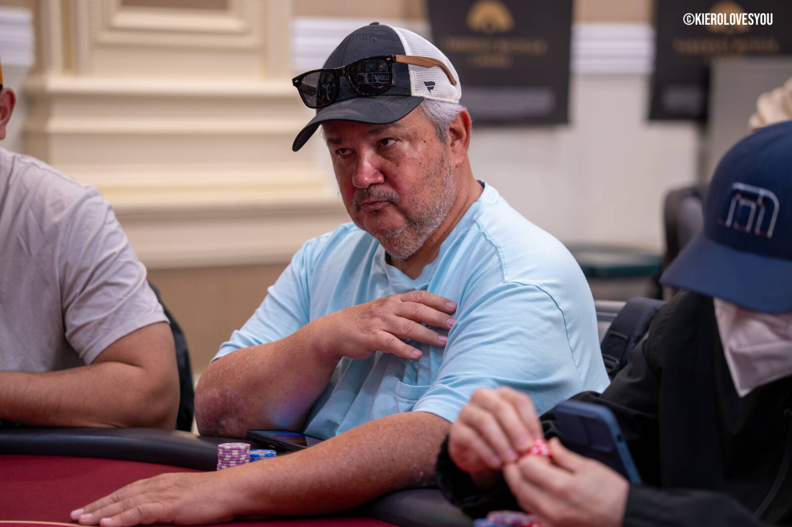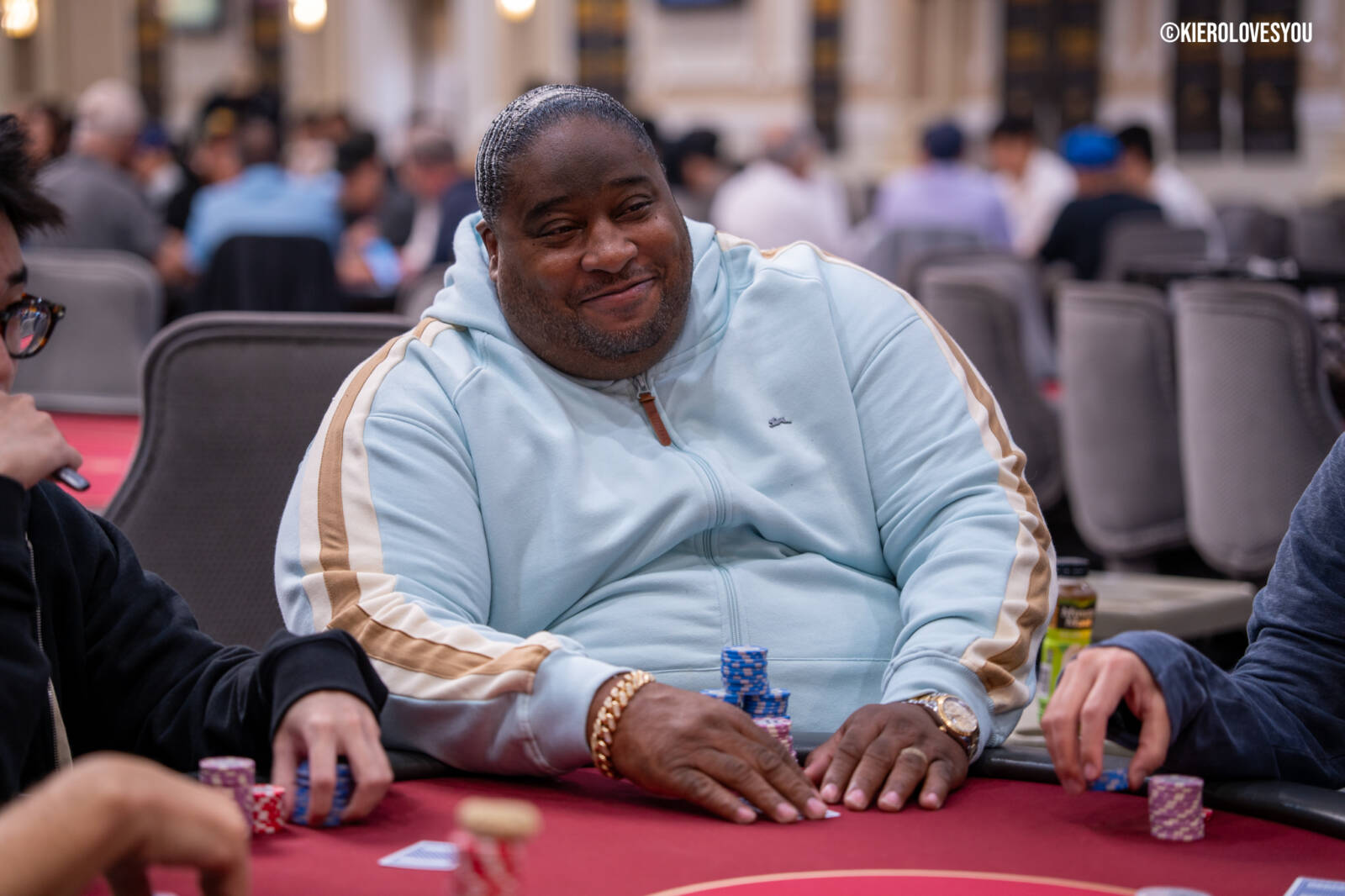 Danny Geyser (PICTURED ABOVE) came in at 3rd largest stack of the day with 799,000 and has risen to 1.3 Million in chips to take the lead for now. Jonah Lopas and Huy Nguyen both losing a few chip but in the top 5 stacks still. Tournament Pros and locals in the field having a good time here at the Parkwest Bicycle Casino as we will update you with more as the day progresses. Players will break at the end of level 18.