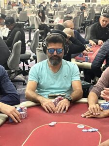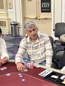 Play has wrapped for the night, with Khaldoun Al-Azzam (pictured above) leading the way with 3,630,000 in chips. Vanik Azizian (pictured below) trails him as a big stack as well with 2,800,000.