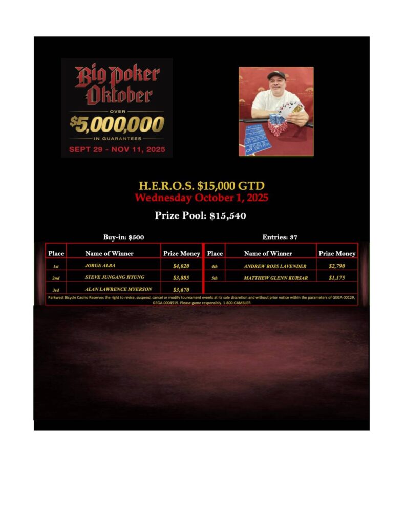 Updated Day 2 Return List for the $500,000 Guaranteed Mystery Bounty