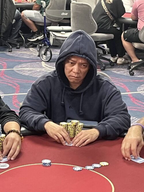We are down to just 20 players in our one day Legendary Deepstack, where we still have a few familiar faces in the mix. Quoc Le is the one with the biggest stack at the moment with over 1,600,000, but still alive and kicking are James Sileo, Aaron Zhang, and Tianyi Ma.