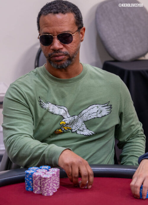 Pictured above our chip leader Rashim Cannad who started the day with 213k in chips and has now worked that up to 2.4 Million in chips. as we get down to the final 13 players, eliminations of short stacks increase with previous chip leader Danny Geyser being Eliminated in 14th.