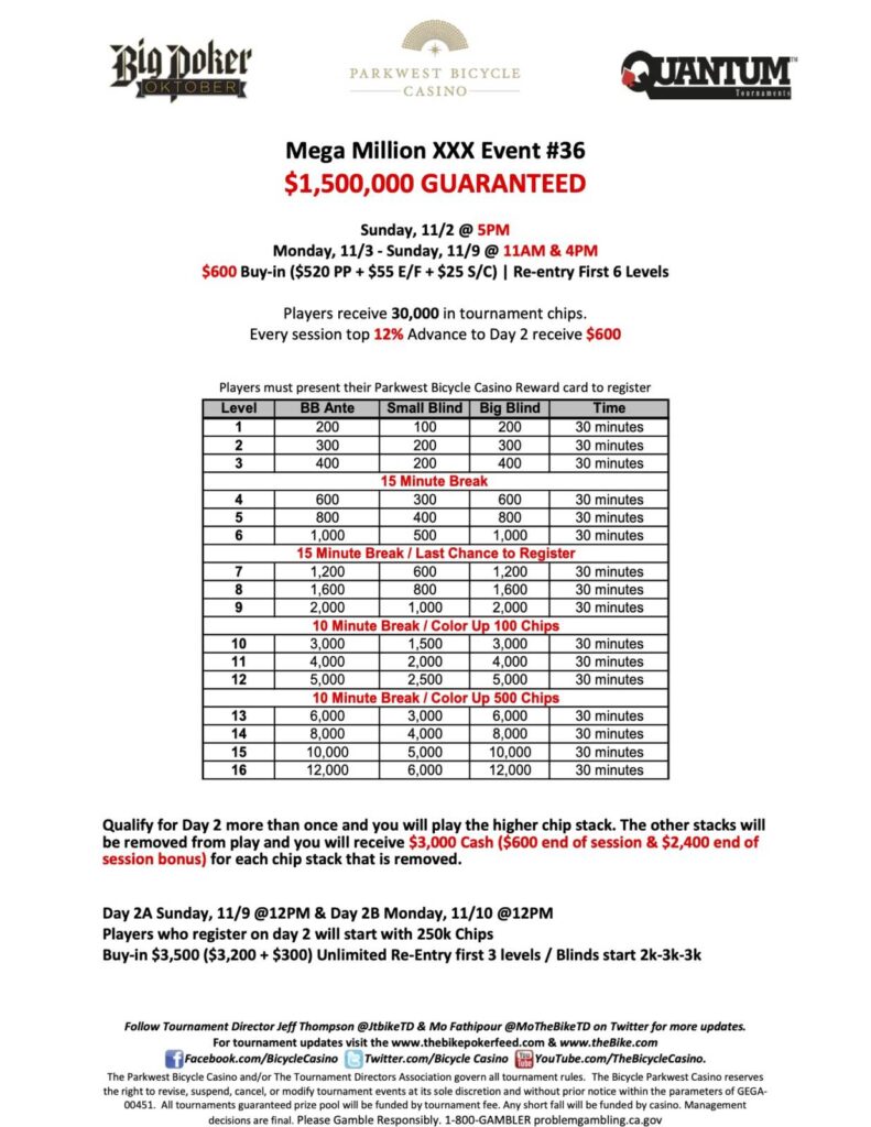 Registration for this $600 flight is open tonight until 7:30 PM, so you have plenty of time to make it on down to the Bike and join us. Remember, we have two final $600 starting sessions tomorrow, at 11 AM and 4 PM. Good luck players!