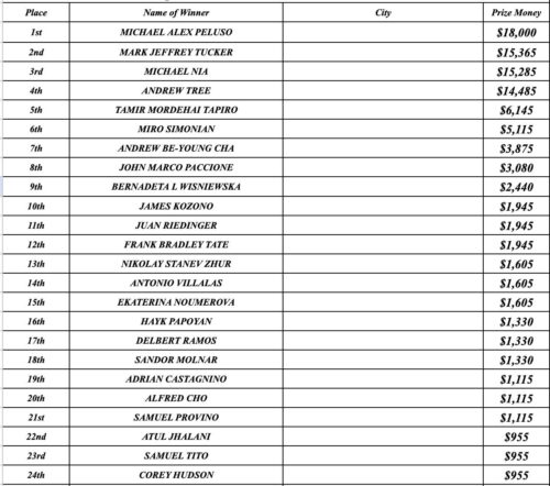 Yesterday saw over 500 players come out for our $100,000 Guaranteed Superstack Event, making for another massive one day prizepool. The final table saw the top four players chop up the prizepool, with each of them taking over $14,000. In the end, it was Michael Peluso (pictured above), took home the most cash, $18,000 even, and the trophy. Check out the top payouts below.