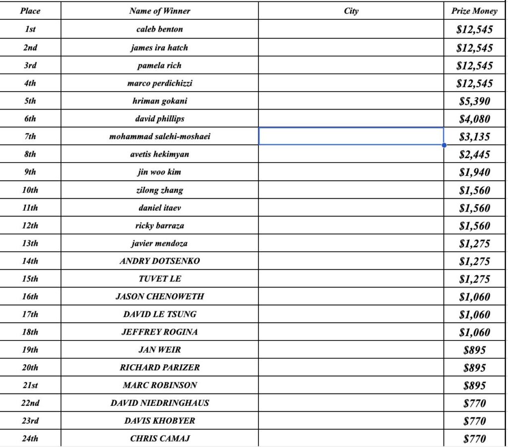 Below you will see all the top payouts from our Kickoff Event yesterday, which as we reported last night, ended in a four way chop.