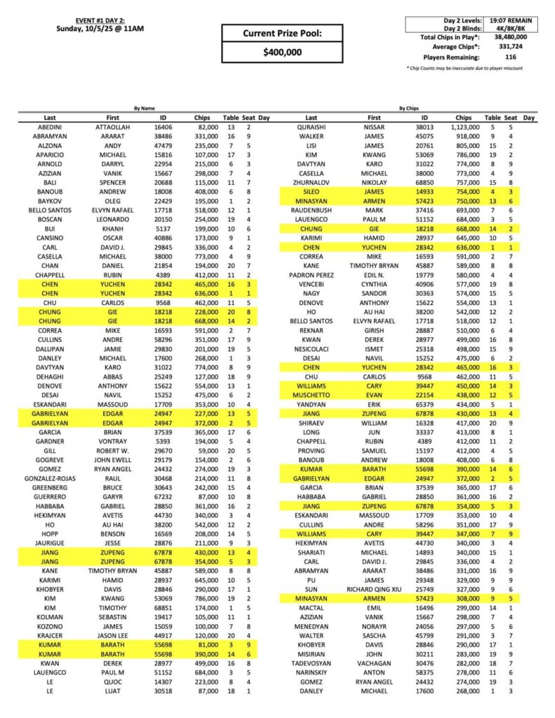 Going into the final day of $400,000 Guaranteed qualifying, we have a new chip leader, and it is a player who has made several final table runs so far this year here at the Bike, Nissar Quiraishi (pictured above). Quiraishi finished runner up to Sohale Khalili in the Parkwest Classic, and also took down a side event at the Legends of Poker last month. 116 players have qualified so far, and you can view the full return list so far below. Remember, we have two final starting sessions today, at 11 AM and 4 PM!