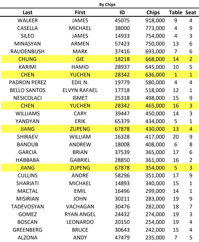 Three days of poker have wrapped up in the Big 4 event, where a total of 52 players have moved on to the Day 2 finals. We have a new chip leader in Mac Walker (pictured above), who bagged up 918,000. At the moment, the blinds coming back will be 5,000/10,000, but there is always a chance that a future flight finishes earlier.