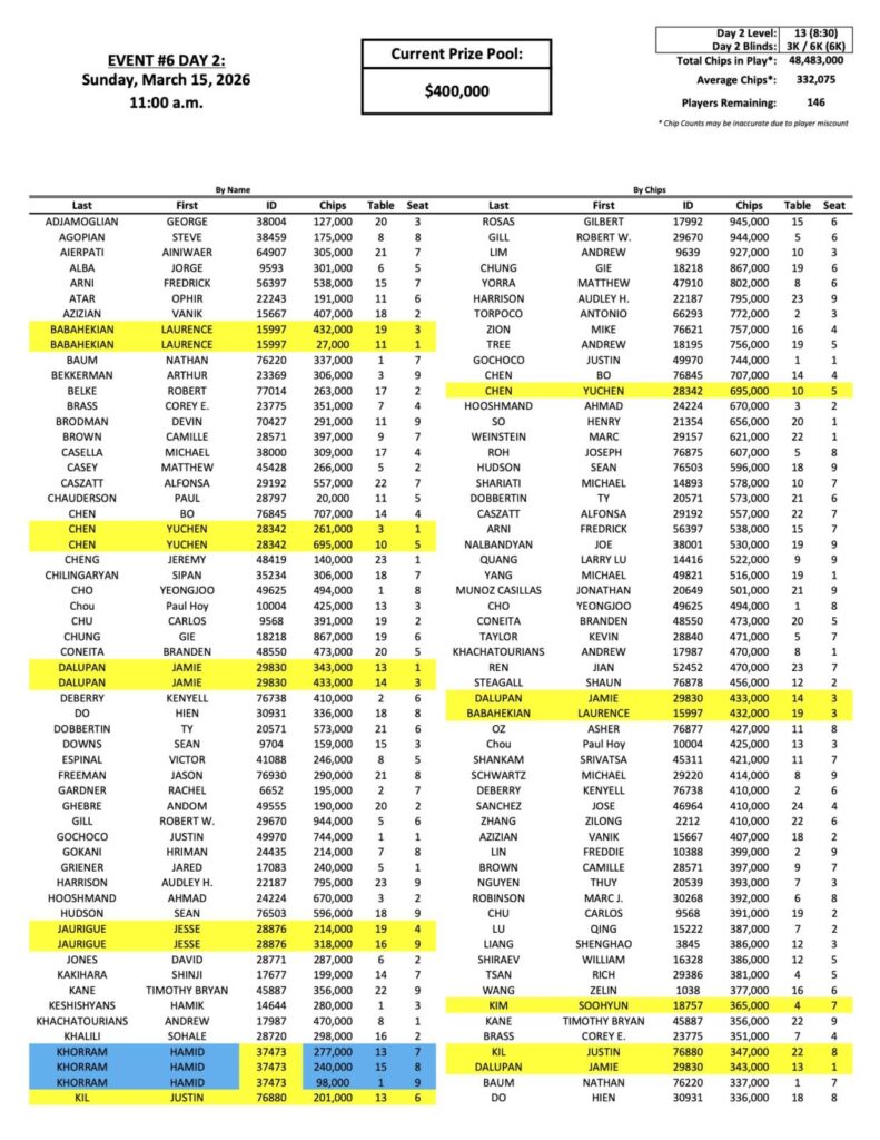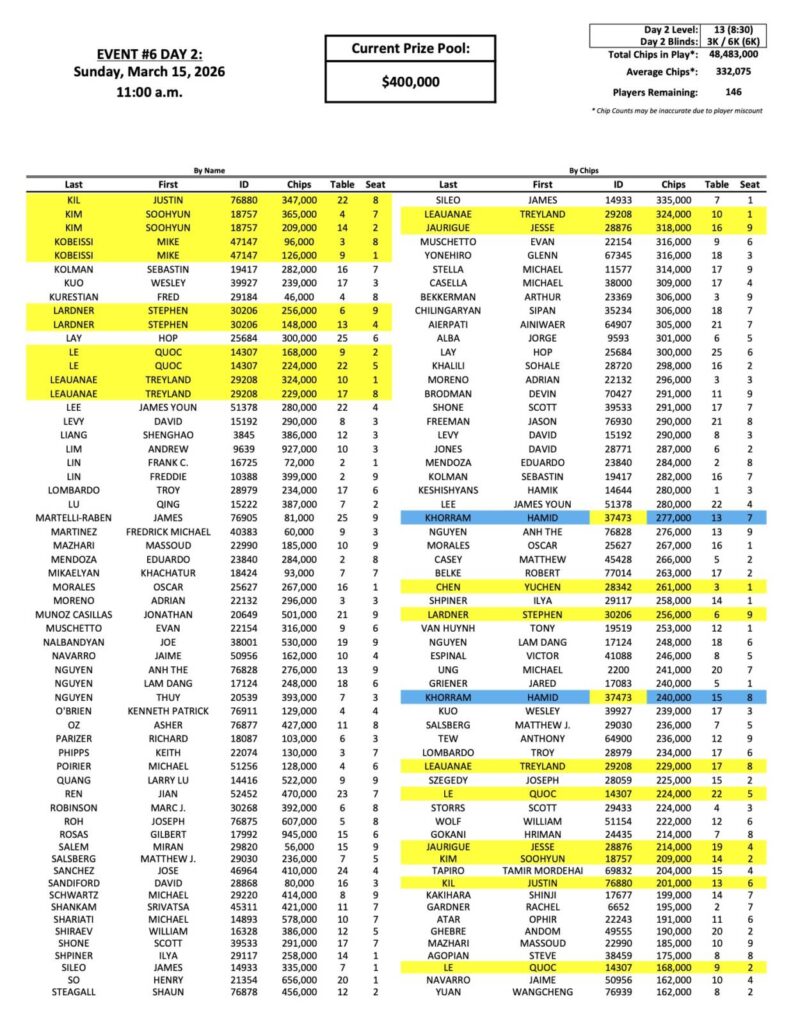 You can view the full list of chip counts so far below, and remember that you have two final chances to qualify for this event today. We are set to cross the guarantee early on in today’s play, meaning there is a good chance that we hit over half a million dollars in the prizepool when registration fully closes for the day at 7:45 PM tonight.
