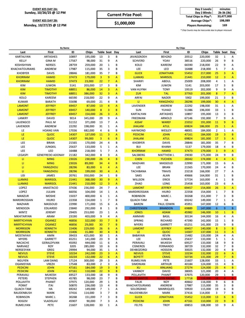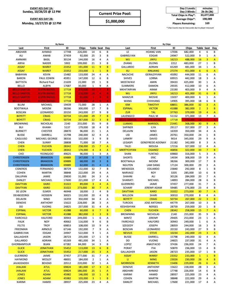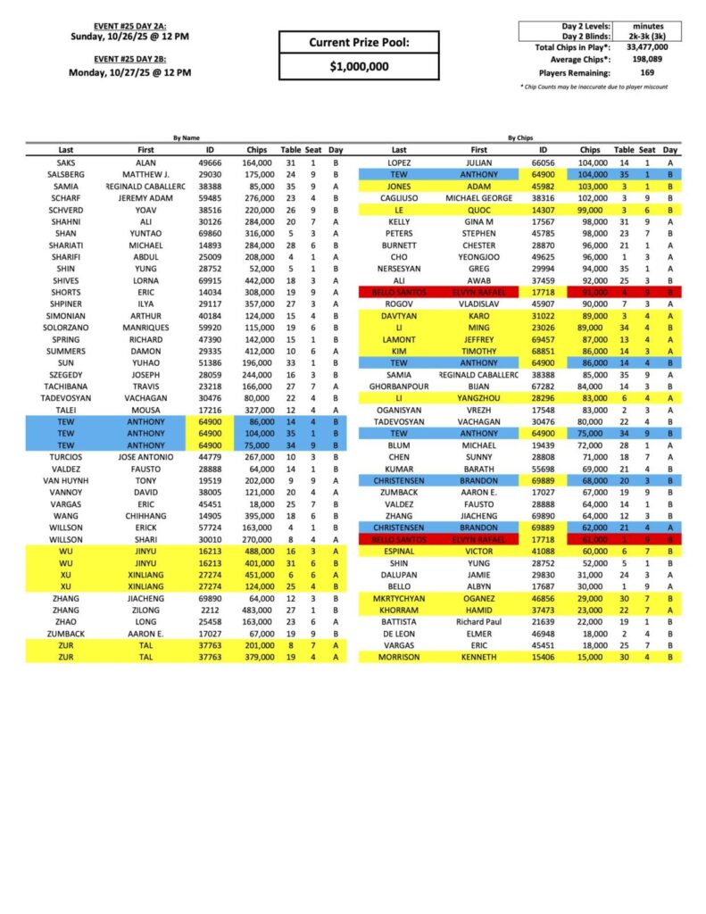 We have a new chip leader here in the Mini Mega Millions, as Hoang Le bagged up 682,000 yesterday here at the Bike. Elvyn Bello also became the first player to bag up four times, hitting his threshold on multiple bag bonuses.